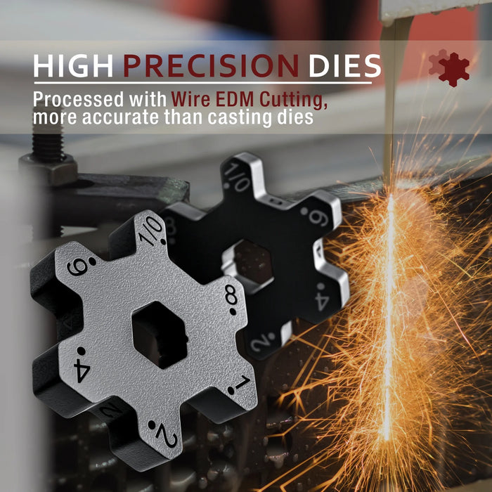 - Rotating Die Set: EDM cutting dies are more dimensionally accurate than stamped dies, prevent inaccurate crimps. Compact rotation die for effortless die changing. Size Coded Crimping: When properly crimped, the die code number will be embossed on the connector for easy inspection to determine if correct die and connector combination were used.
